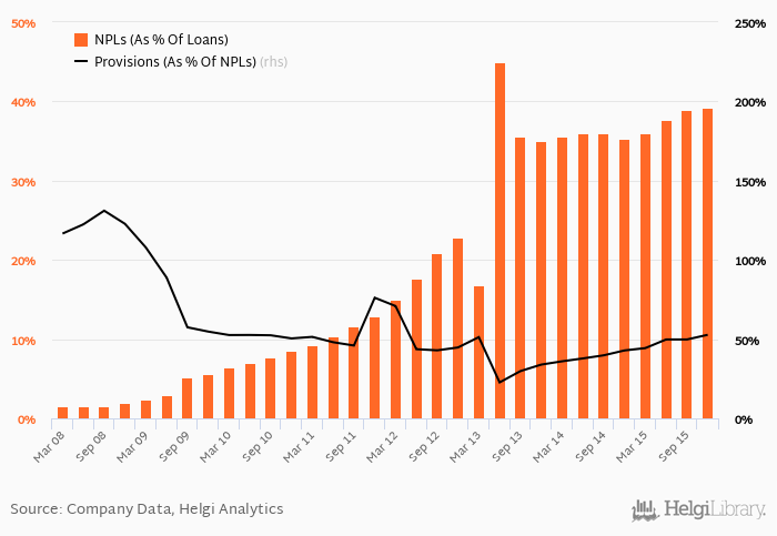 Provision coverage amounted to 52.7% at the end of 2015-12-31, up from 42.9% compared to a year earlier.