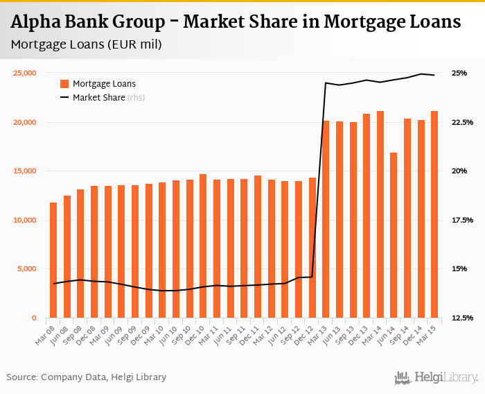 Alpha Bank Group's mortgage loans reached EUR 21,200 mil in 1Q2015, up 4.57% compared to the previous year.