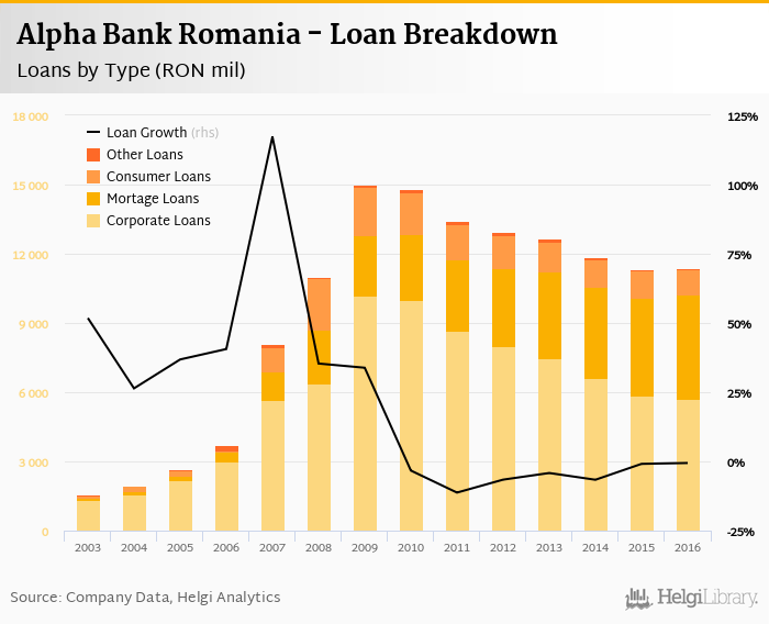 Mortgage loans represented 39.6% of the bank's loan book at the end of the year 2016, consumer further 9.71% and corporate loans 50.3% of total loans.