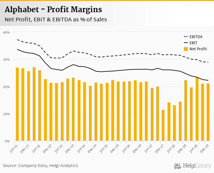 Alphabet made a net profit of USD 10,671 mil with revenues of USD 46,075 mil in 4Q2019, up by 19.3% and up by 17.3%, respectively, compared to the previous year.