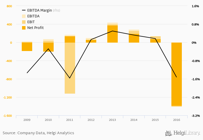 Historically, between 2009 - 2016, the firm’s net profit reached a high of CZK 373 mil in 2013 and a low of CZK -1,383 mil in 2016. Since 2011, the firm's net profit has decreased 1% or nan% a year on average.