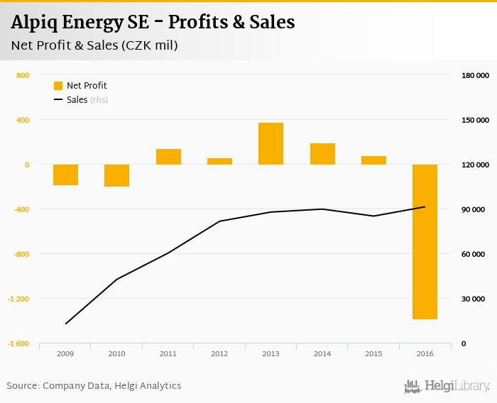 Alpiq Energy SE made a net profit of CZK -1,383 mil in 2016, down 1% compared to the previous year. Total sales reached CZK 91,218 mil, which is up 7.35% when compared to the previous year.