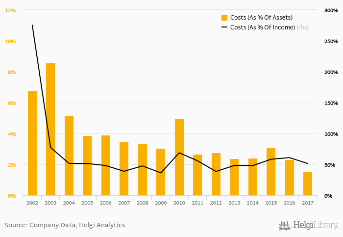 When compared to total assets, bank's cost amounted to 1.54% in 2017, down from 2.30% a year earlier.
