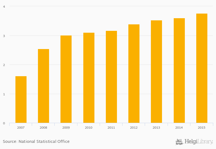 Historically, alternative fuel passenger cars as a percentage of total cars in Croatia reached an all time high of 3.75% in 2015 and an all time low of 1.61% in 2007.