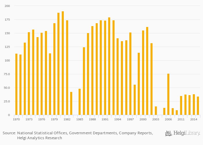 Historically, primary aluminium production in Ghana reached an all time high of 191 kt in 1981 and an all time low of 0 kt in 1984.