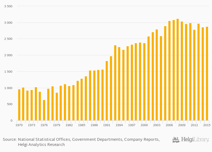 Primary aluminium production rose 0.763% to 2,880 kt in Canada in 2015, according to the National Statistical Office.