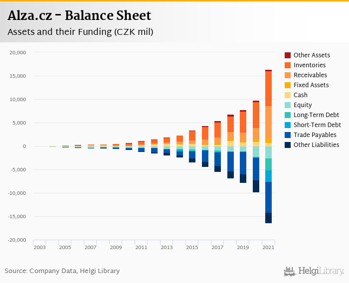 Alza.cz's total assets reached CZK 16,334 mil at the end of 2021, up 66.9% compared to the previous year.