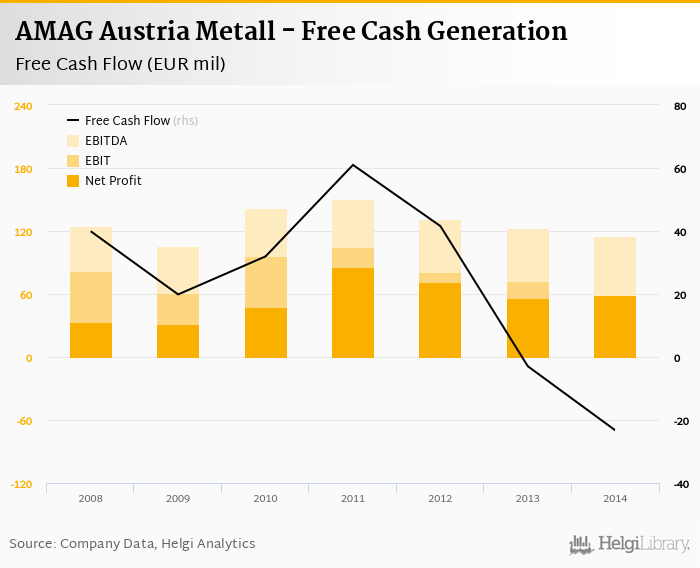AMAG Austria Metall made a net profit of EUR 59.2 mil with revenues of EUR 823 mil in 2014, up by 5.68% and up by 4.64%, respectively, compared to the previous year. This translates into a net margin of 7.20%.
