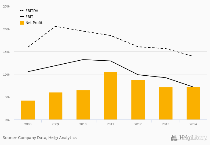 On the operating level, the EBITDA margin reached 13.9% and EBIT amounted to 7.16% of sales in 2014.