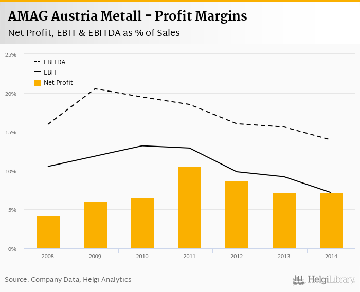 AMAG Austria Metall made a net profit of EUR 59.2 mil with revenues of EUR 823 mil in 2014, up by 5.68% and up by 4.64%, respectively, compared to the previous year.