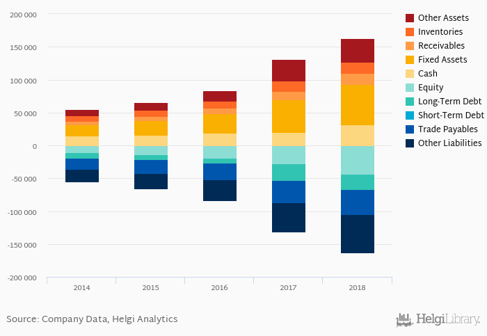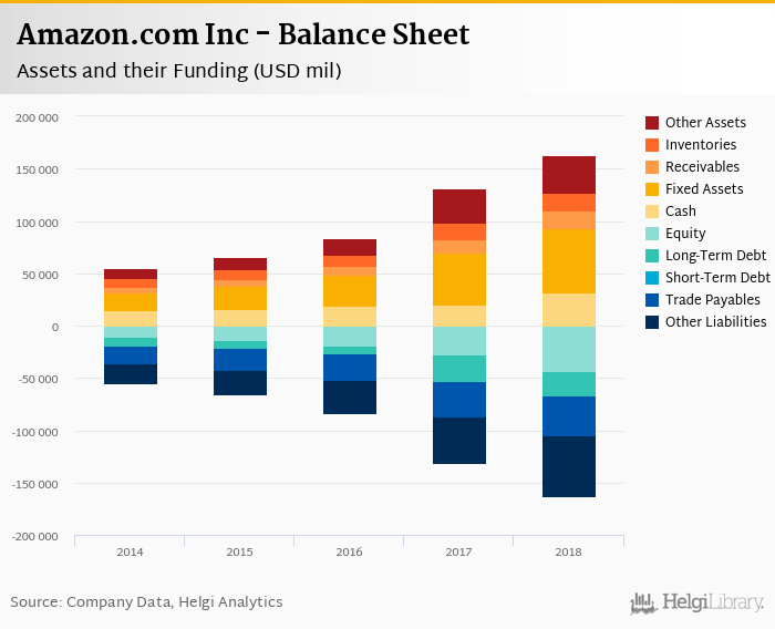 Amazon.com Inc's total assets reached USD 162,648 mil at the end of 2018, up 23.9% compared to the previous year.