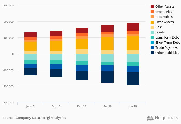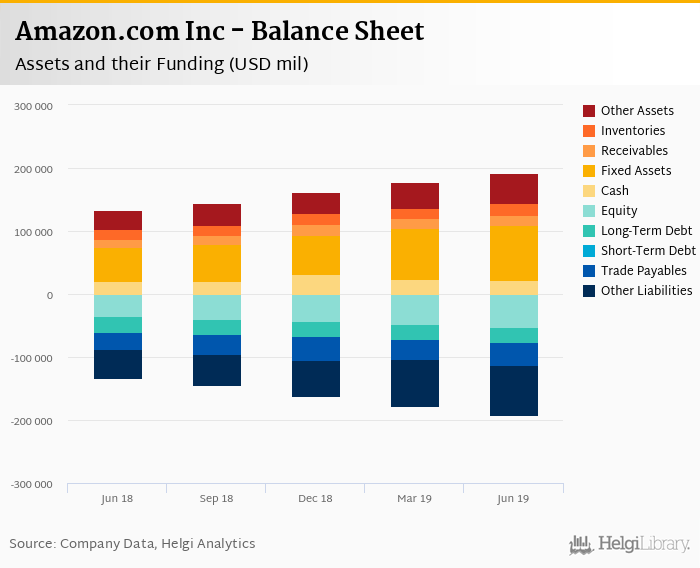 Amazon.com Inc's total assets reached USD 191,351 mil at the end of 2Q2019, up 42.7% compared to the previous year.