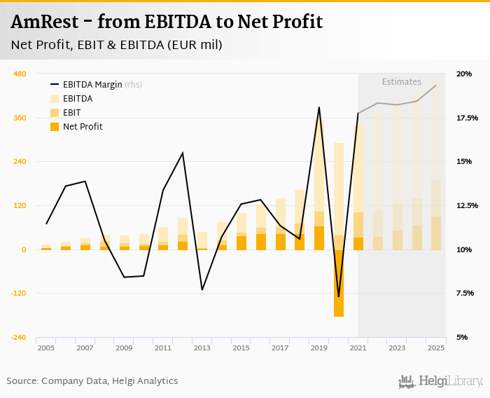 AmRest made a net profit of EUR 32.9 mil with revenues of EUR 1,917 mil in 2021, up by 118% and up by 25.9%, respectively, compared to the previous year. This translates into a net margin of 1.72%.