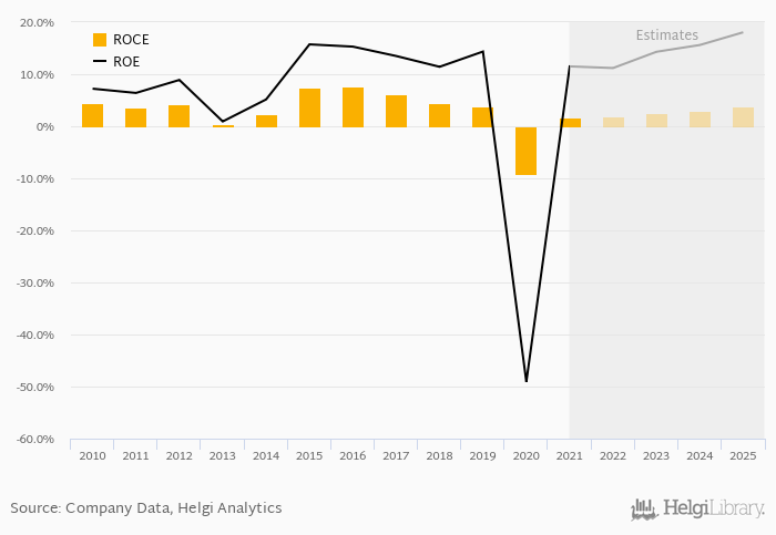 The result implies a return on equity of 11.5% and a return on invested capital of 1.79% in 2021. That is compared to an average of 0.334% and 1.42% over the last five years.