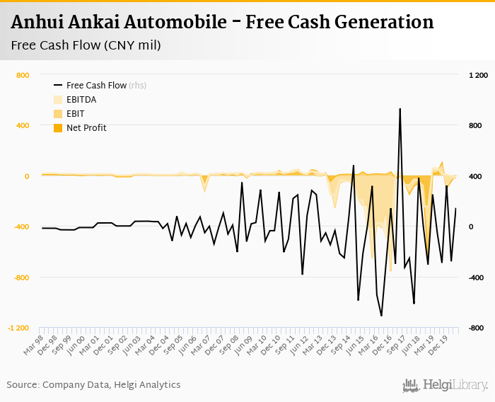 Anhui Ankai Automobile made a net profit of CNY -0.222 mil with revenues of CNY 571 mil in 2Q2020, down by 101% and down by 33.4%, respectively, compared to the previous year. This translates into a net margin of -0.039%.