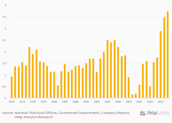| Vietnam | ... | ... | ... | ... | ... | ... | ... | ... | ... | ... | ... | ... | 0.266 | 0.243 | 0.286 | 0.480 | 0.990 |