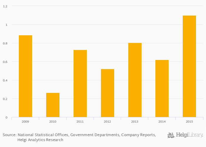 Historically, antimony prodution in Laos reached an all time high of 1.10 in 2015 and an all time low of 0.265 in 2010.