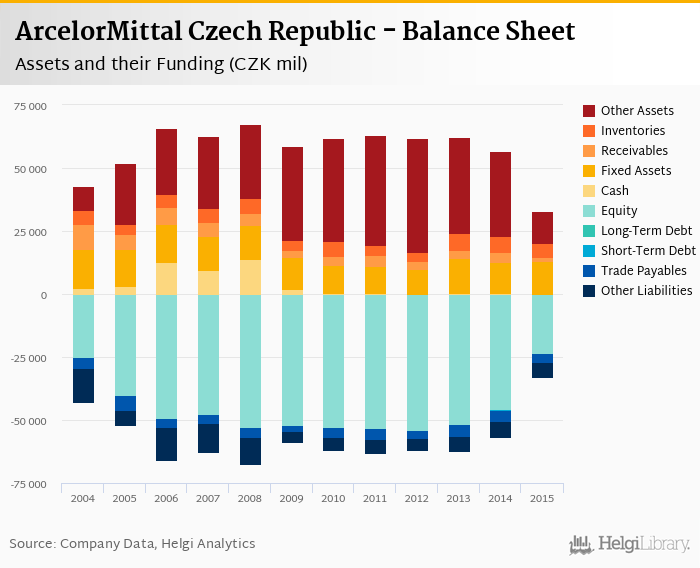 ArcelorMittal Czech Republic's total assets reached CZK 32,982 mil at the end of 2015, down 42% compared to the previous year.