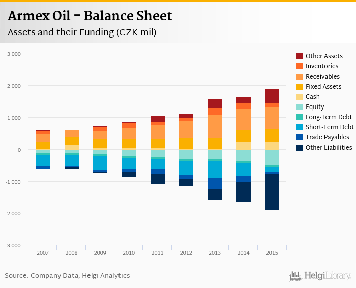 Armex Oil's total assets reached CZK 1,884 mil at the end of 2015, up 14.7% compared to the previous year.