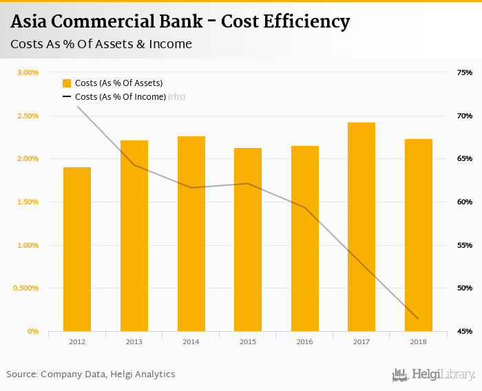 Asia Commercial Bank's cost to income ratio reached 46.4% in 2018, down from 52.8% compared to the previous year.