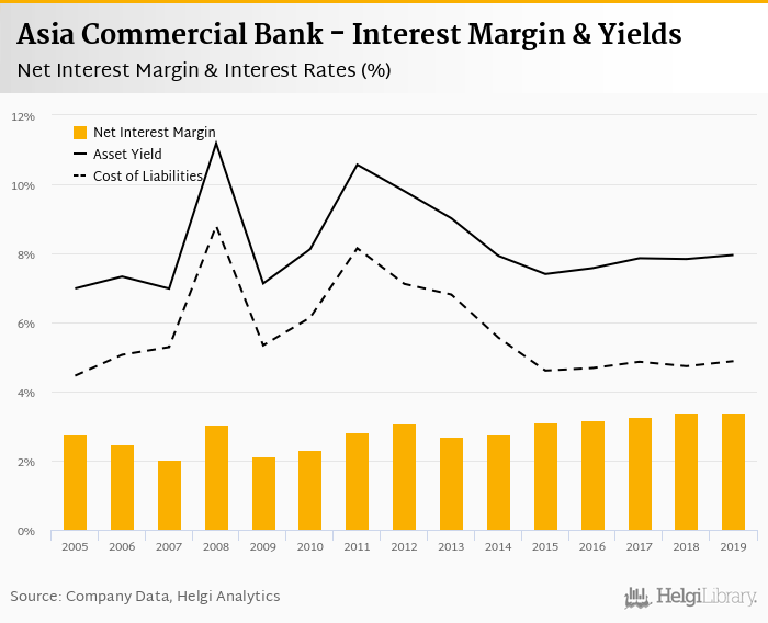 Asia Commercial Bank's net interest margin amounted to 3.41% in 2019, up from 3.39% compared to the previous year.