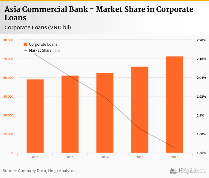 Asia Commercial Bank's corporate loans reached VND 76,973 bil in 2016, up 11.9% compared to the previous year.