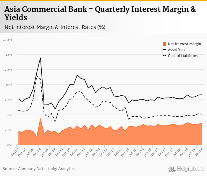 Asia Commercial Bank's net interest margin amounted to 3.59% in the fourth quarter of 2019, up from 3.43% when compared to the previous quarter.