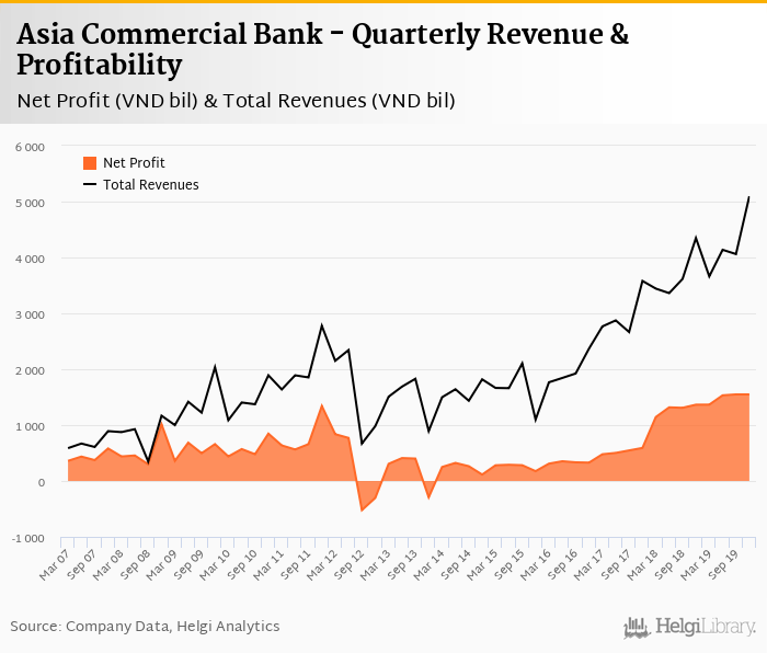 Asia Commercial Bank made a net profit of VND 1,549 bil under revenues of VND 5,096 bil in the fourth quarter of 2019, up 13.5% and 17.2% respectively when compared to the same period last year.
