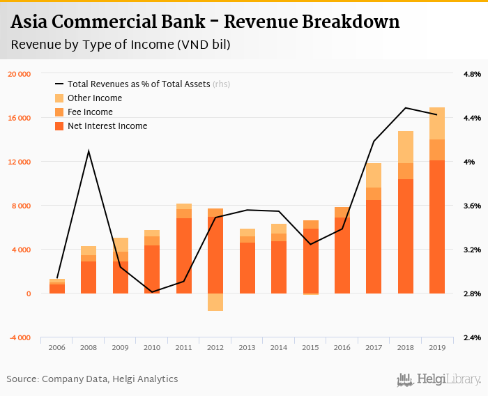 Asia Commercial Bank generated total banking revenues of VND 16,956 bil in 2019, up 14.8% compared to the previous year.