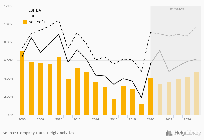 On the operating level, the EBITDA margin reached 9.07% and EBIT amounted to 5.62% of sales in 2020.