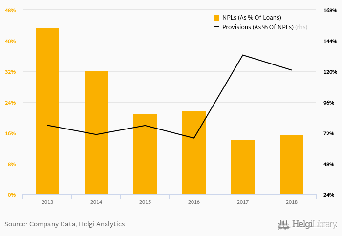 Provision coverage amounted to 121% at the end of 2018, down from 133% compared to a year earlier.