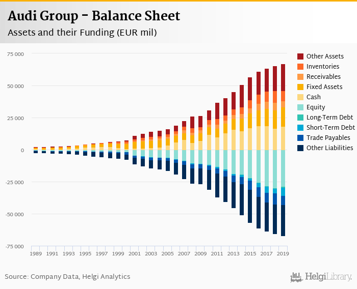 Audi Group's total assets reached EUR 66,878 mil at the end of 2019, up 1.95% compared to the previous year.