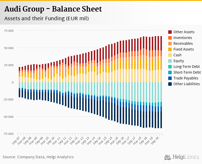 Audi Group's total assets reached EUR 66,878 mil at the end of 4Q2019, up 1.95% compared to the previous year.