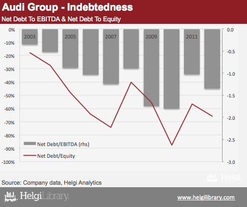 Consolidated sales of Audi Group reached a record level of EUR 48.8 bil in 2012 while net profit amounted to nearly of EUR 4.3 bil. That is an impressive average annual growth of 8.5% in sales and 20.4% in profits since 2003.