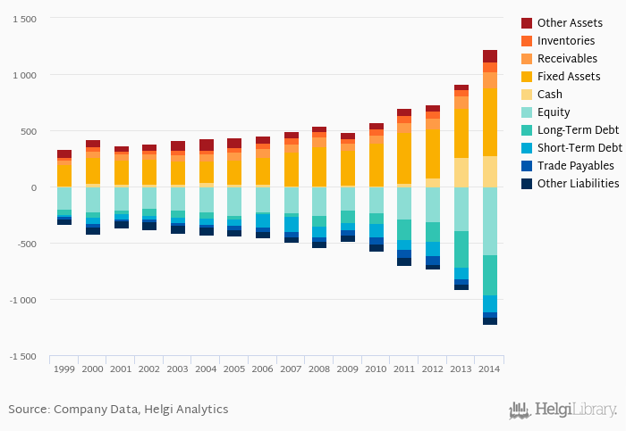 Current assets amounted to EUR 508 mil, or 41.6% of total assets while cash stood at EUR 274 mil at the end of 2014.