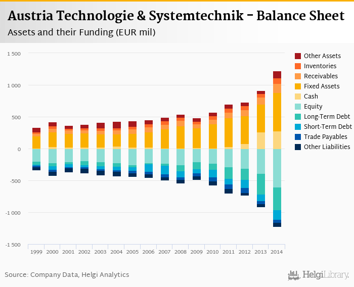 Austria Technologie & Systemtechnik's total assets reached EUR 1,221 mil at the end of 2014, up 33.3% compared to the previous year.
