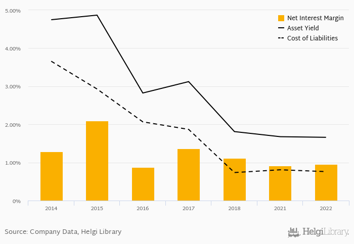 Historically, the bank’s net interest margin reached an all time high of 2.10% in 2015 and an all time low of 0.876% in 2016. The average margin in the last five years amounted to 1.05%.