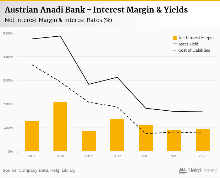 Austrian Anadi Bank's net interest margin amounted to 0.952% in 2022, up from 0.922% compared to the previous year.