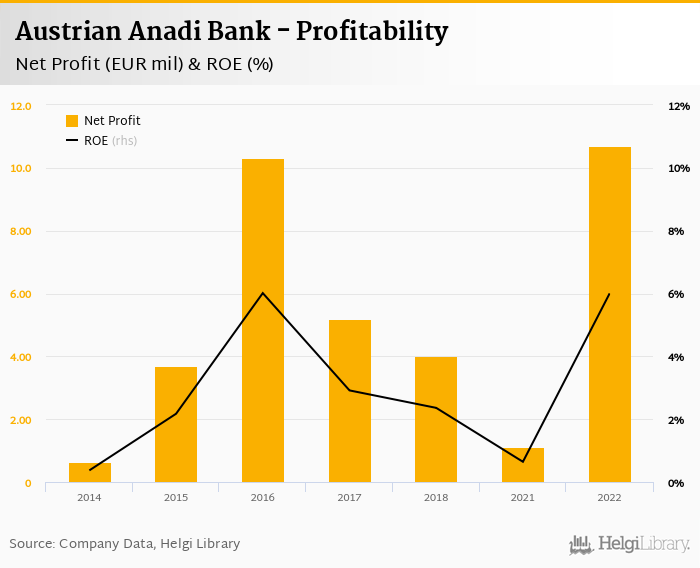 Austrian Anadi Bank made a net profit of EUR 10.7 mil in 2022, up 865% compared to the previous year. This implies a return on equity of 6.00%.