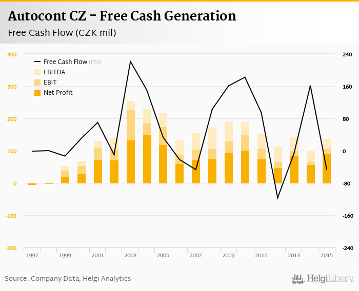 Autocont CZ made a net profit of CZK 91.2 mil with revenues of CZK 3,034 mil in 2015, up by 57.8% and up by 26.5%, respectively, compared to the previous year. This translates into a net margin of 3.01%.
