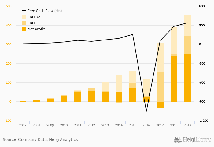 On the operating level, EBITDA reached USD 455 mil, up 16% compared to the previous year. Over the last five years, the company's EBITDA has risen 27.4% a year on average.