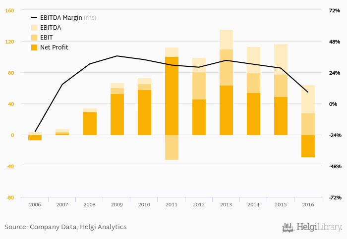 Historically, between 2006 - 2016, the firm’s net profit reached a high of USD 100 mil in 2011 and a low of USD -28.4 mil in 2016. Since 2011, the firm's net profit has decreased 128% or nan% a year on average.