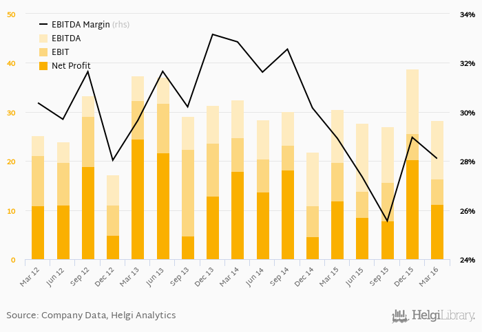 Historically, between 1Q2012 - 1Q2016, the firm’s net profit reached a high of USD 24.4 mil in 1Q2013 and a low of USD 4.58 mil in 4Q2014. Since 1Q2011, the firm's net profit has increased 0% or 0% a year on average.