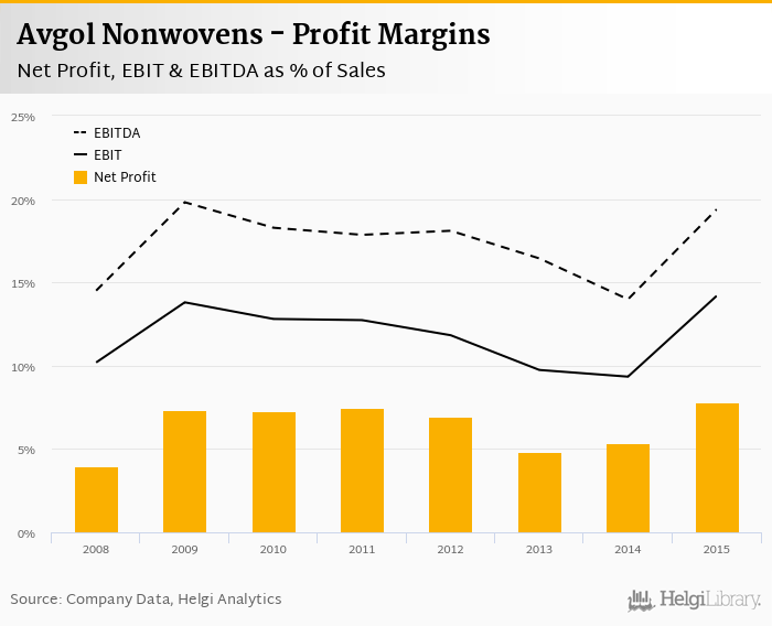 Avgol Nonwovens made a net profit of USD 26.6 mil with revenues of USD 341 mil in 2015, up by 35.1% and down by 7.73%, respectively, compared to the previous year.