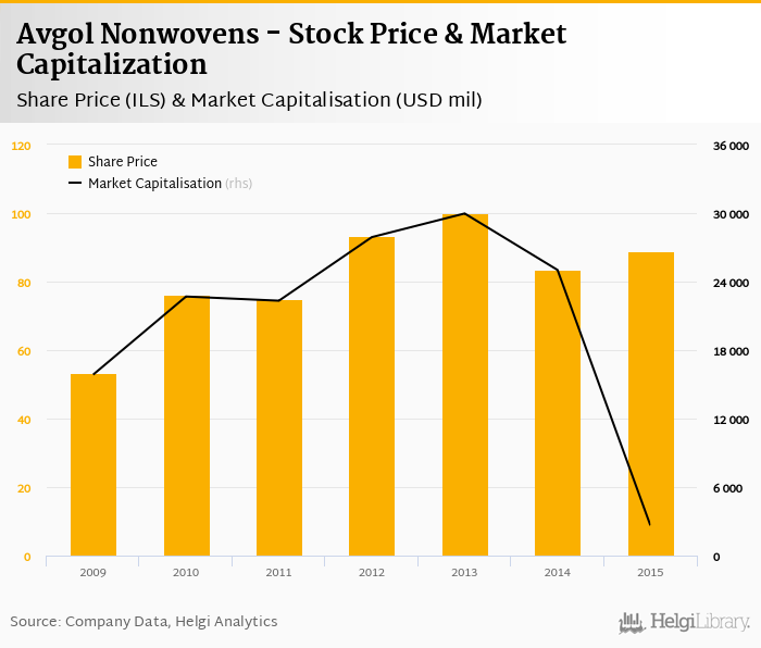 Avgol Nonwovens stock traded at ILS 89.0 per share at the end 2015 implying a market capitalization of USD 2,637 mil.