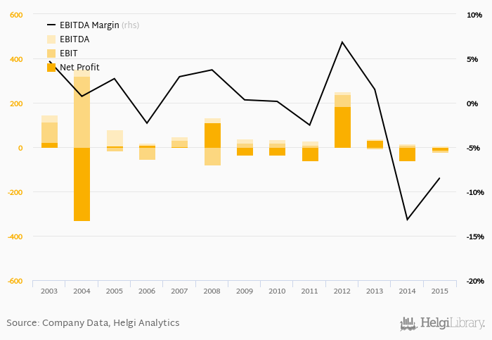 Historically, between 2003 - 2015, the firm’s net profit reached a high of CZK 183 mil in 2012 and a low of CZK -331 mil in 2004. Since 2010, the firm's net profit has increased 65.4% or -19.1% a year on average.