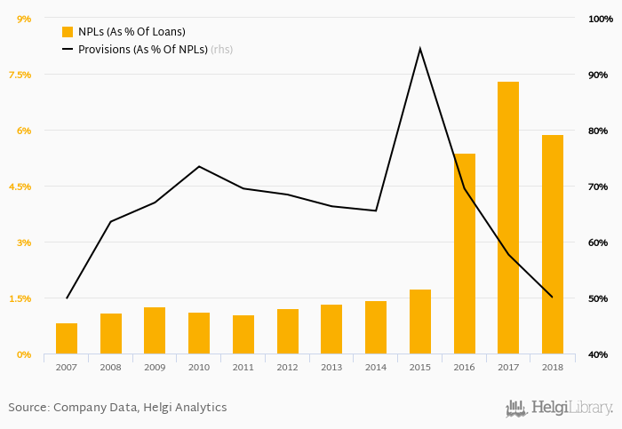 Provision coverage amounted to 50.0% at the end of 2018, down from 57.7% compared to a year earlier.