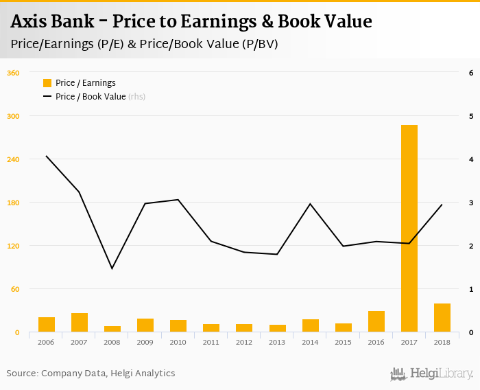 Axis Bank stock traded at INR 773 per share at the end 2018 implying a market capitalization of USD 28,639 mil.