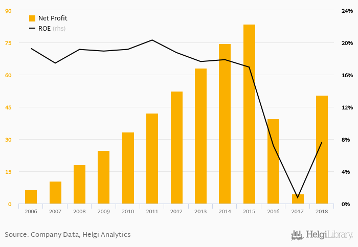 The bank generated its shareholders an average return on equity of 10.1% in the last five years with maximum at 17.9% and minimum at 0.755%