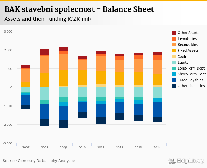 BAK stavebni spolecnost's total assets reached CZK 1,894 mil at the end of 2014, up 3.48% compared to the previous year.